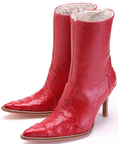 Sensational exotic skin boots that are completely hand crafted and hand stitched. The inside is a butter soft lambskin leather for superior comfort and the sole is handstitched in leather for excellent traction. The insole is cushioned for added shock absorption. The boots aren't made in a "painted-on" process to color like other manufacturers; instead, they use a special aniline process to dye the premium grade Ostrich that the selected color permeates the skins thoroughly. he skins maintain its color for a lifetime and becomes more beautiful with age. Features Genuine Ostrich leather. Full s